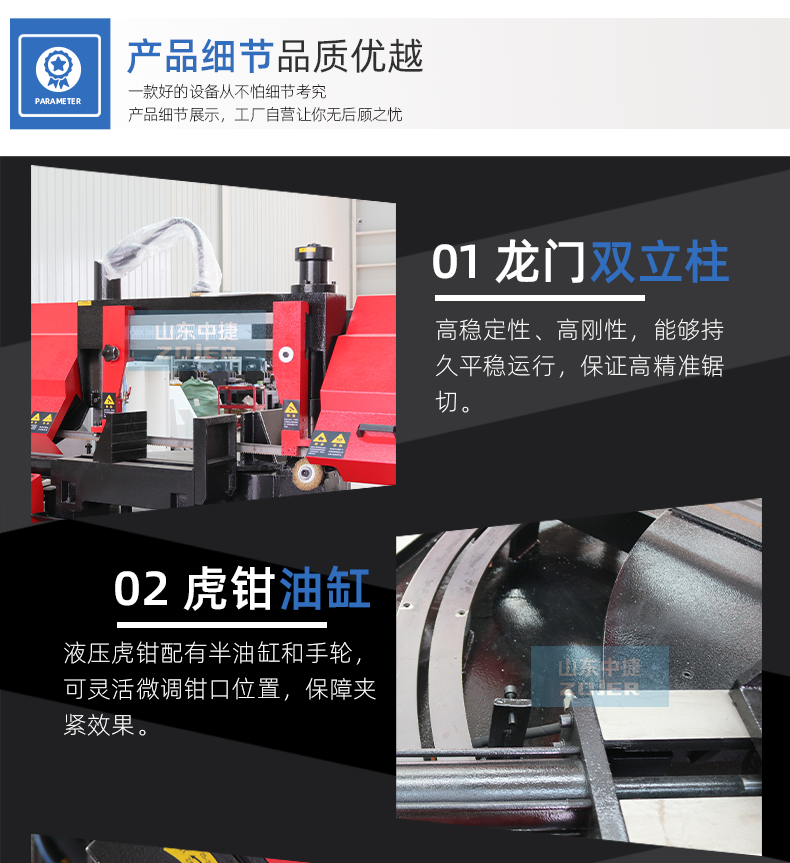 u锯床具有可调式锯带导向装置,保证锯带运转平滑,大大提高了 锯带的切削质量和使用寿命