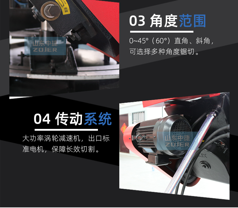 u配有大功率蜗轮传动机构,保持永久润滑,保证锯带运转的稳定 ,可延长锯带的使用寿命